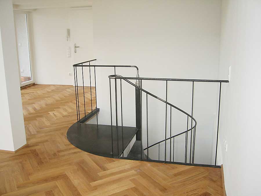 Doppelfischgrät Eiche; anarbeiten Treppenaufgang Rundbogen