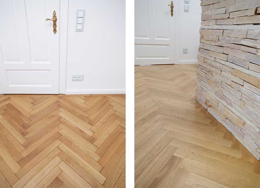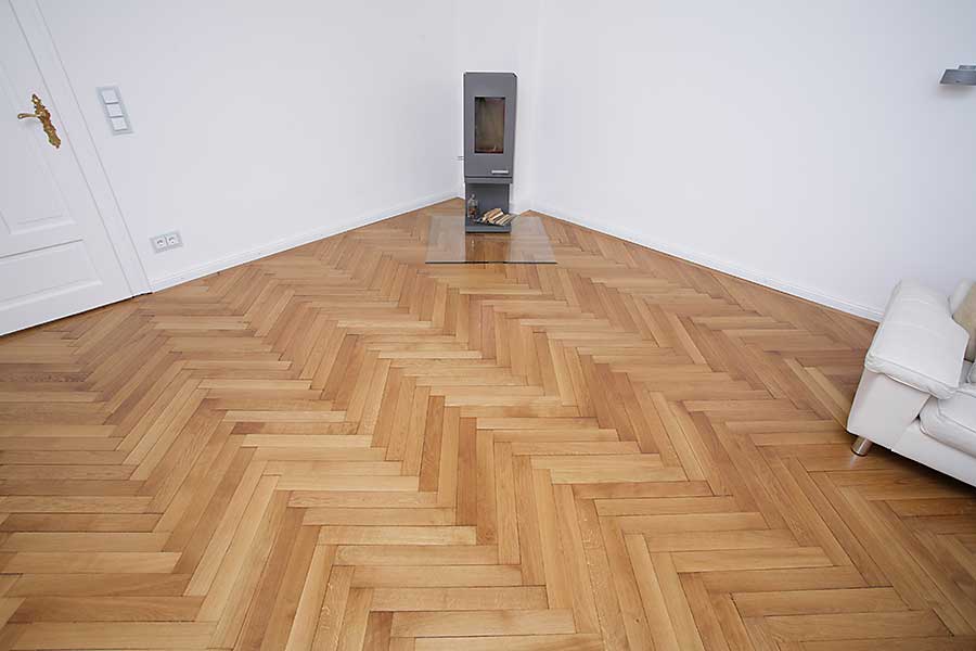 Fischgrätparkett Eiche / Oberfläche geölt / gesamte Wohnungsfläche