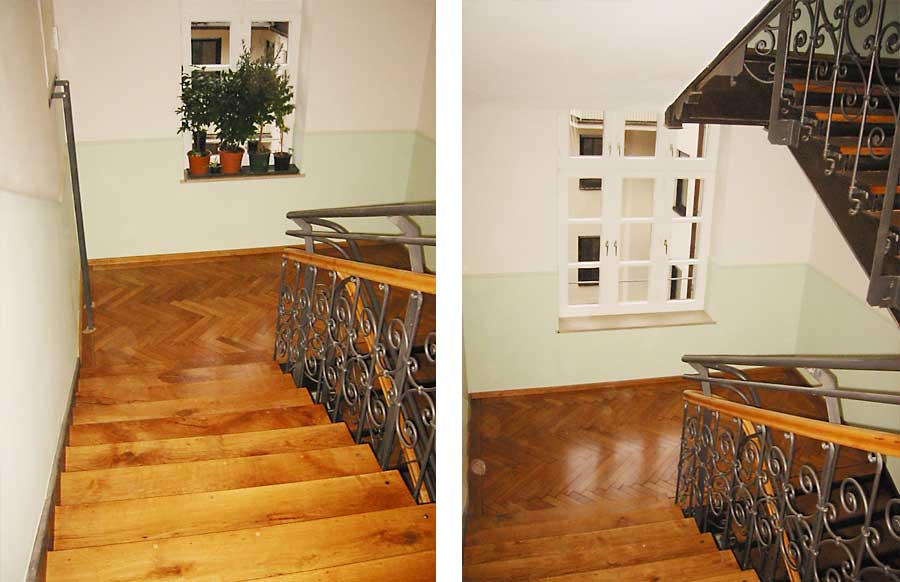 Gerade Treppenhäuser unterliegen einer hohen Beanspruchung, was eine regelmäßige Renovierung und Sanierung erforderlich macht. Die erforderlichen Arbeiten reichen dabei von einer kompletten Sanierung und Stabilisierung der Treppenanlage bis zu einer Teilrenovierung von Treppenteilen wie Trittstufen, Setzstufen, Seitenwangen, Podeste und Geländer. Die konkreten Maßnahmen umfassen beispielsweise das Schleifen und Auffrischen der Treppenstufen, die Reparatur der Vorderkanten, die Erneuerung der Podeste.